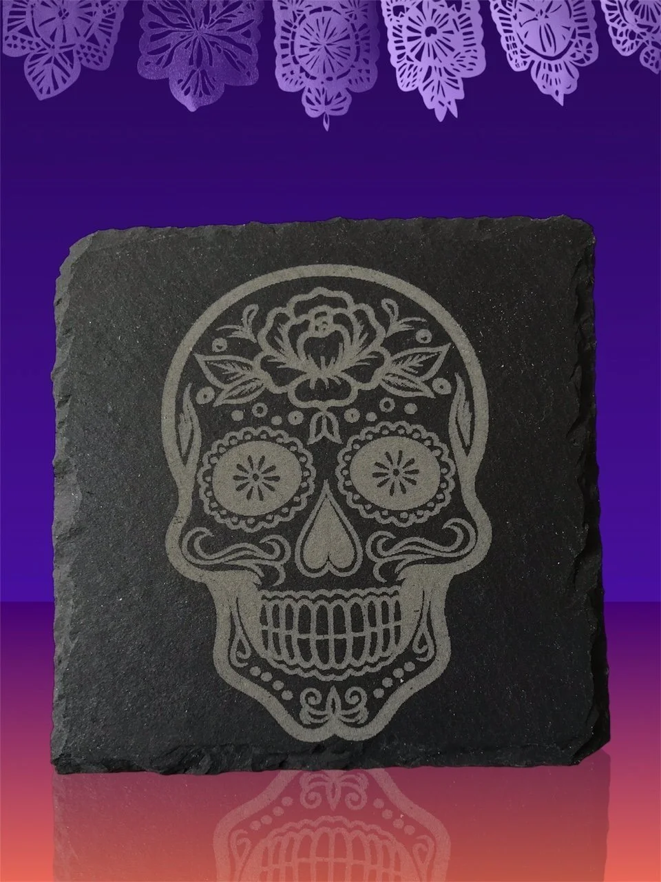 Image 1 of 2 Image 2 of 2 Sugar Skull Slate Coaster £4.00 Slate coaster engraved with a fun sugar skull design.Great gift for Halloween or Day of the Dead celebrations Purchase Added! Slate coaster engraved with a fun sugar skull design.Great gift for Halloween or Day of the Dead celebrations